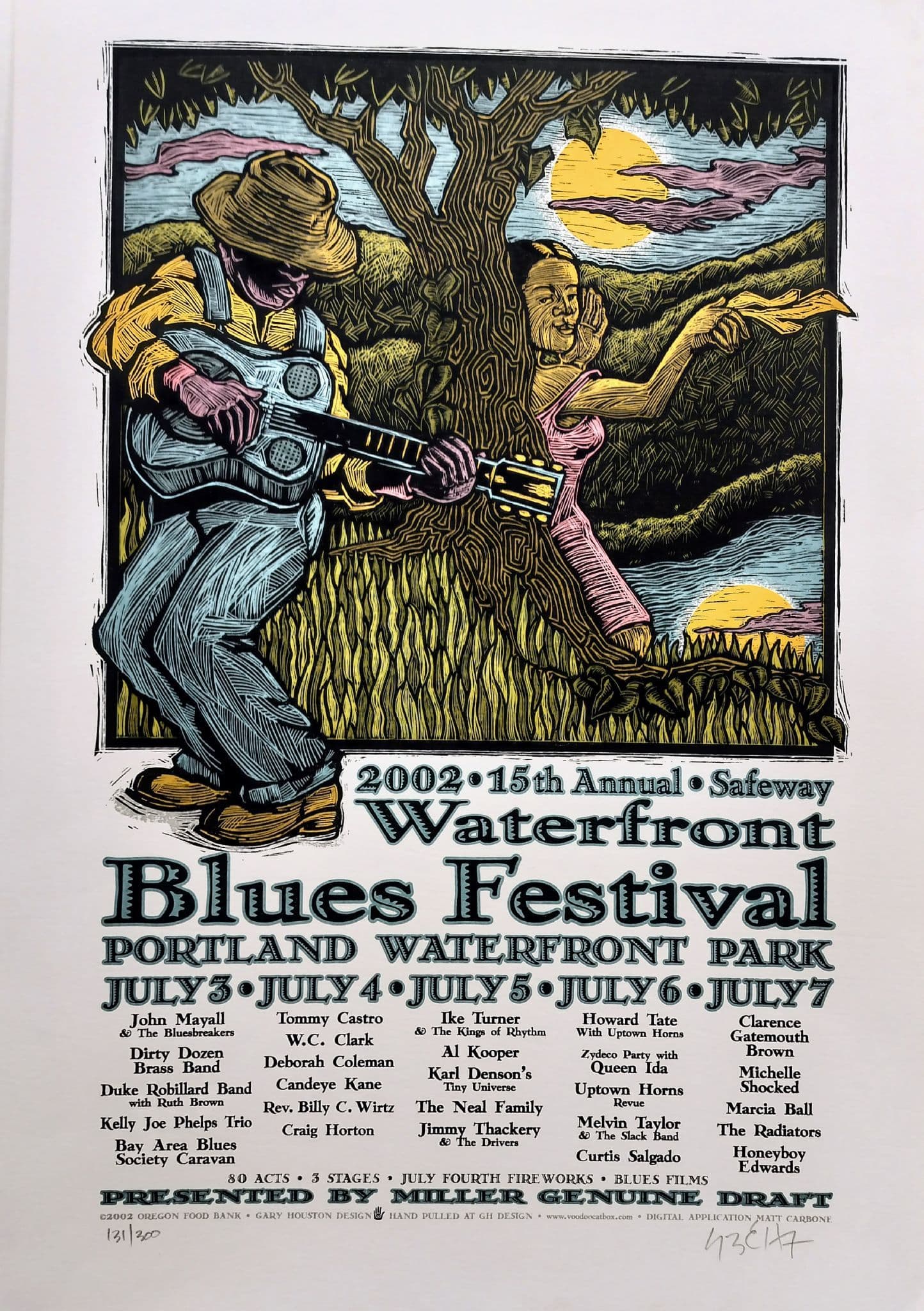 Home Waterfront Blues Festival 2002 Gary Houston £25.00 Stock Status: In Stock Gary Houston 2002 Waterfront Blues Festival Information 15th Annual Waterfront Blues Festival. Portland. July 3, 4, 5, 6 and 7th 2002 18 x 26 inches. Signed and numbered by Gary Houston. Small indentation top right border.